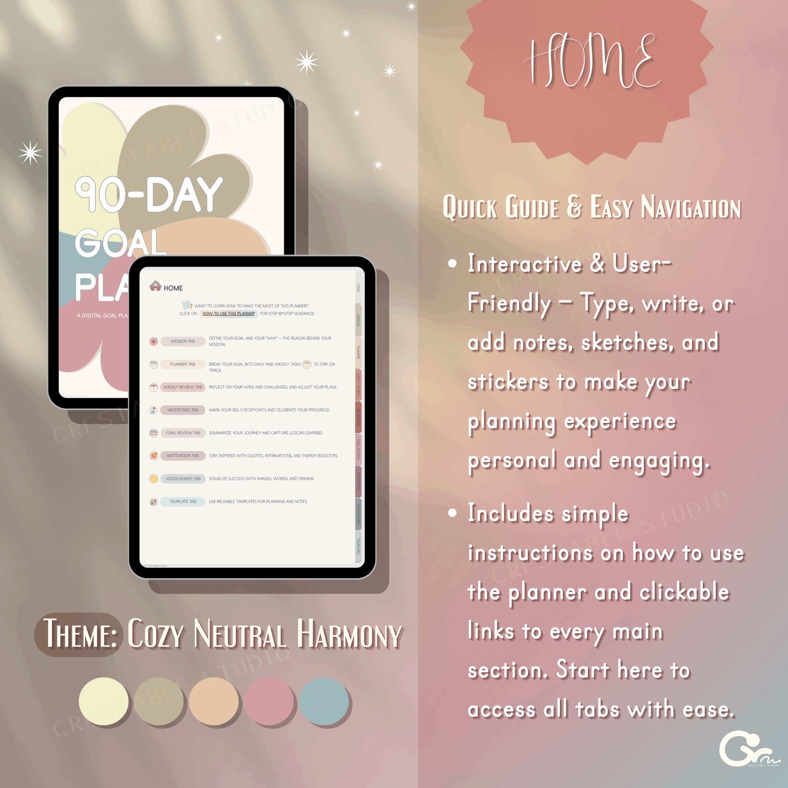 ★☆★ Undated 90-Day Digital Planner | Cozy Neutral Harmony Theme ★☆★