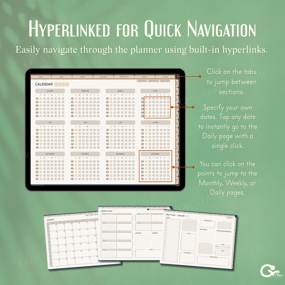 GoodNotes, iPad & tablet compatible — includes Sunday & Monday start versions for flexible planning.