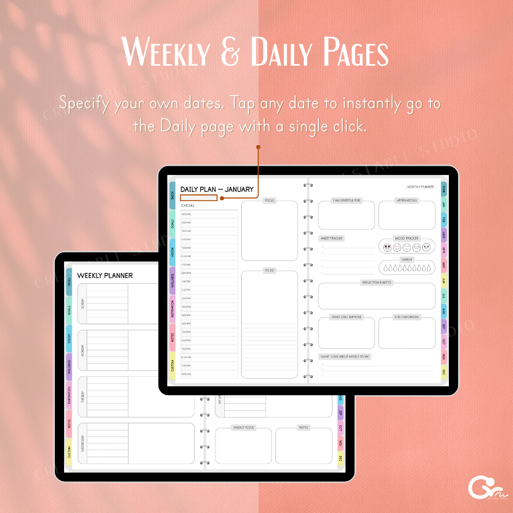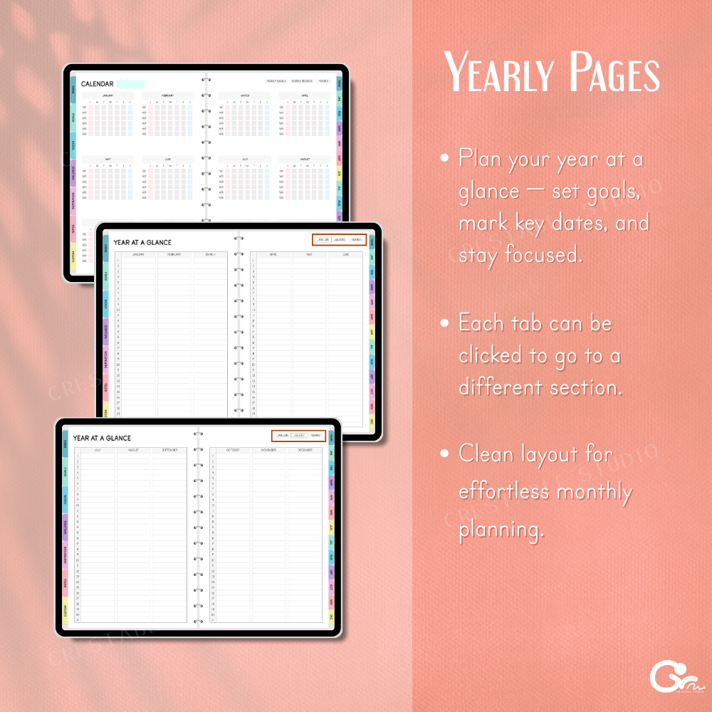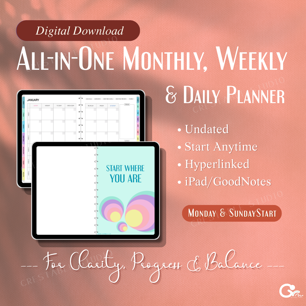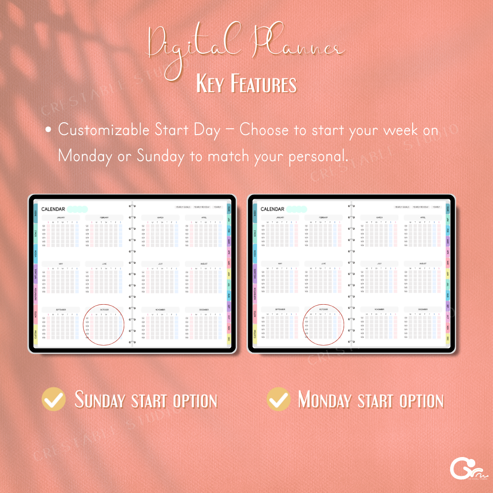 GoodNotes, iPad & tablet compatible — choose Sunday or Monday start for flexible planning.